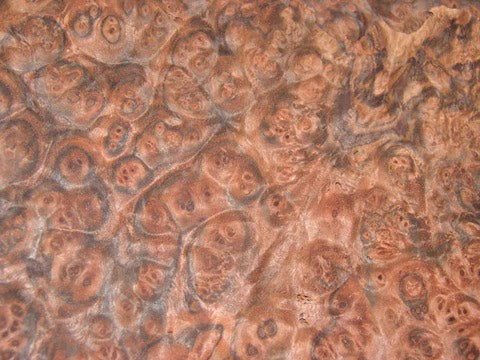 When worked, Eucalyptus Burl has a distinctive eucalyptus scent—sharp, medicinal, and slightly sweet—due to its volatile oils, which can be pungent when green but fade after drying. In the UK, it’s prized for high-end applications like decorative veneer, luxury furniture, turned objects (e.g., bowls, pens), and knife handles, where its unique patterns can be showcased. Its acoustic properties also make it a choice for musical instrument components, offering a bright, resonant tone.
