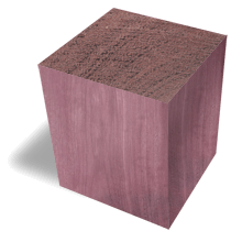 Purpleheart has a density of around 850–1,050 kg/m³, making it a very hard, heavy, and durable wood with excellent strength and stability once seasoned. It’s highly resistant to decay, moisture, and insects, thanks to its natural resins, making it suitable for both indoor and outdoor applications. The wood can be challenging to work due to its hardness, which dulls tools quickly, and its interlocked grain may cause tearout during planing or sawing. It glues and finishes well, though its natural resins can interfere with adhesion—degreasing with a solvent like white spirit is recommended. The purple colour can bleed into finishes if not sealed properly, and while oil-based finishes enhance its vibrancy, UV exposure will eventually mute the hue unless protected.