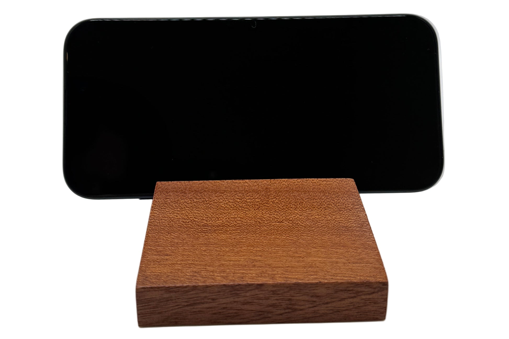 Elevate your workspace with this refined phone stand, crafted from rich Sapele wood and finished with a lustrous lacquer coating. The warm, distinctive grain of Sapele brings natural elegance to any desk or surface, whilst the smooth lacquer finish provides durability and a polished aesthetic. Designed for practical everyday use, this stand offers reliable support for your device whilst maintaining an understated sophistication that complements contemporary and traditional interiors alike.