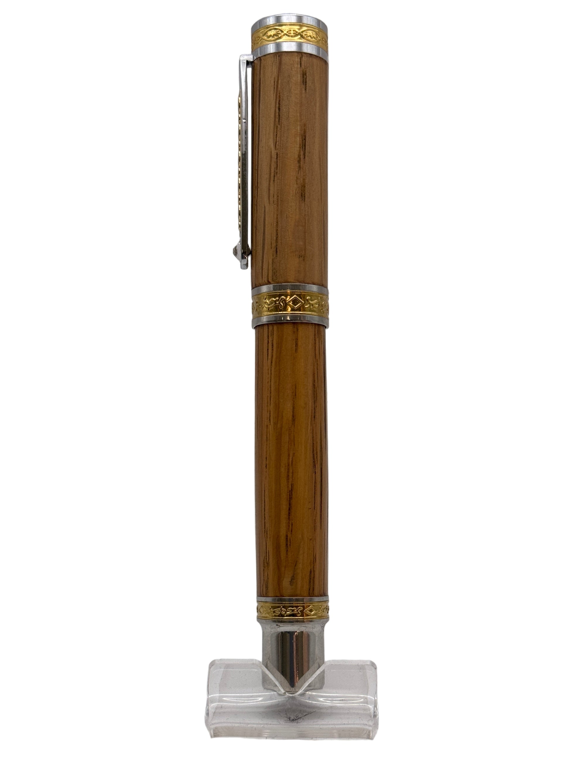 Command attention with The Regal, a pen that embodies the essence of royalty in every detail. Its ornate gold engravings and a sparkling gemstone near the clip create a luxurious focal point, while the balanced design ensures a smooth, authoritative writing experience. Perfect for leaders, executives, and those who appreciate the finer things, The Regal transforms every stroke into a mark of distinction. Whether you’re signing an important document or crafting a legacy, this pen lets you write with the grace and power of a true monarch. Elevate your writing with The Regal—your symbol of elegance and authority.The wood used in this pen is Jack Daniels Oak Barrel Stave