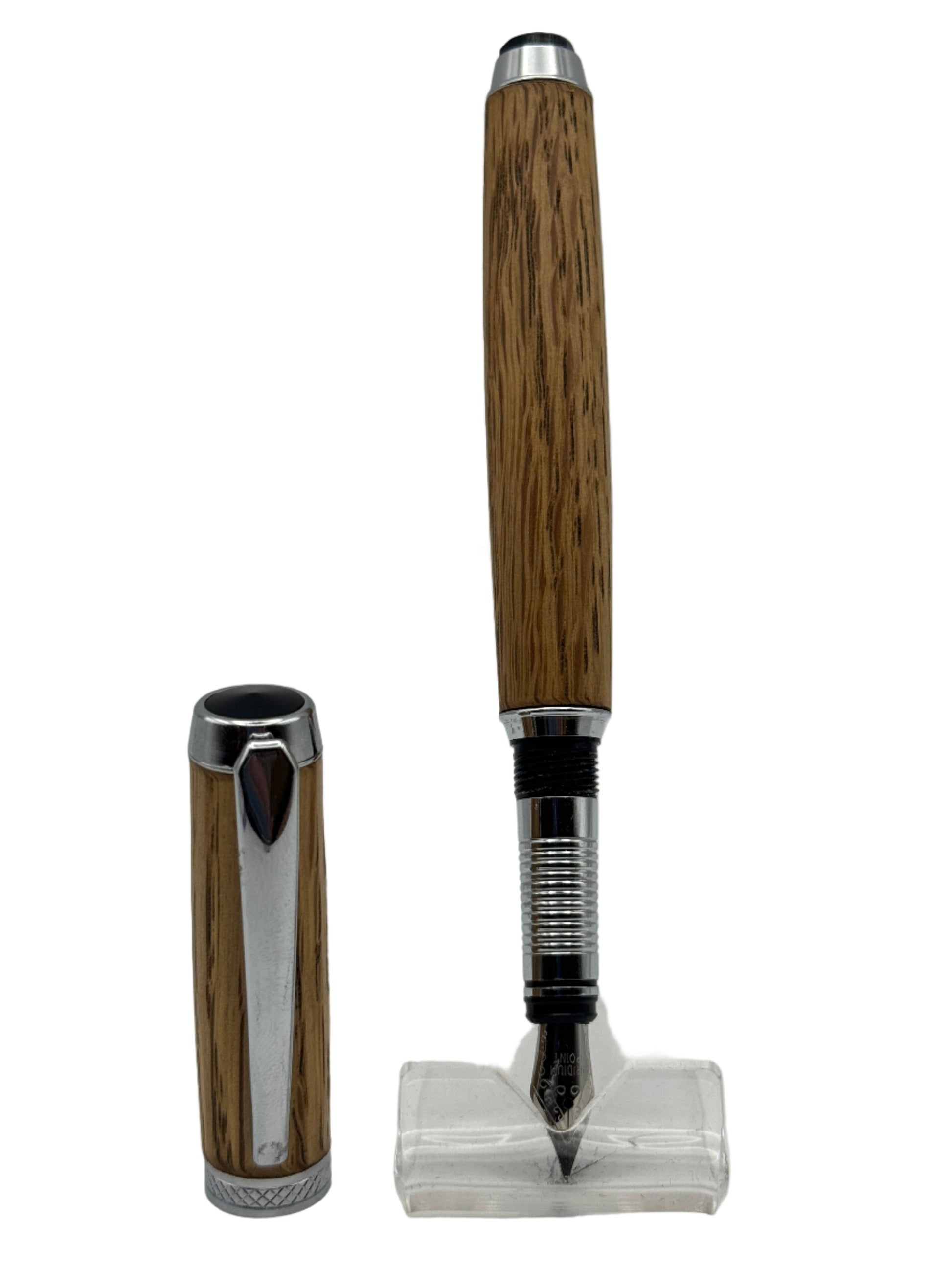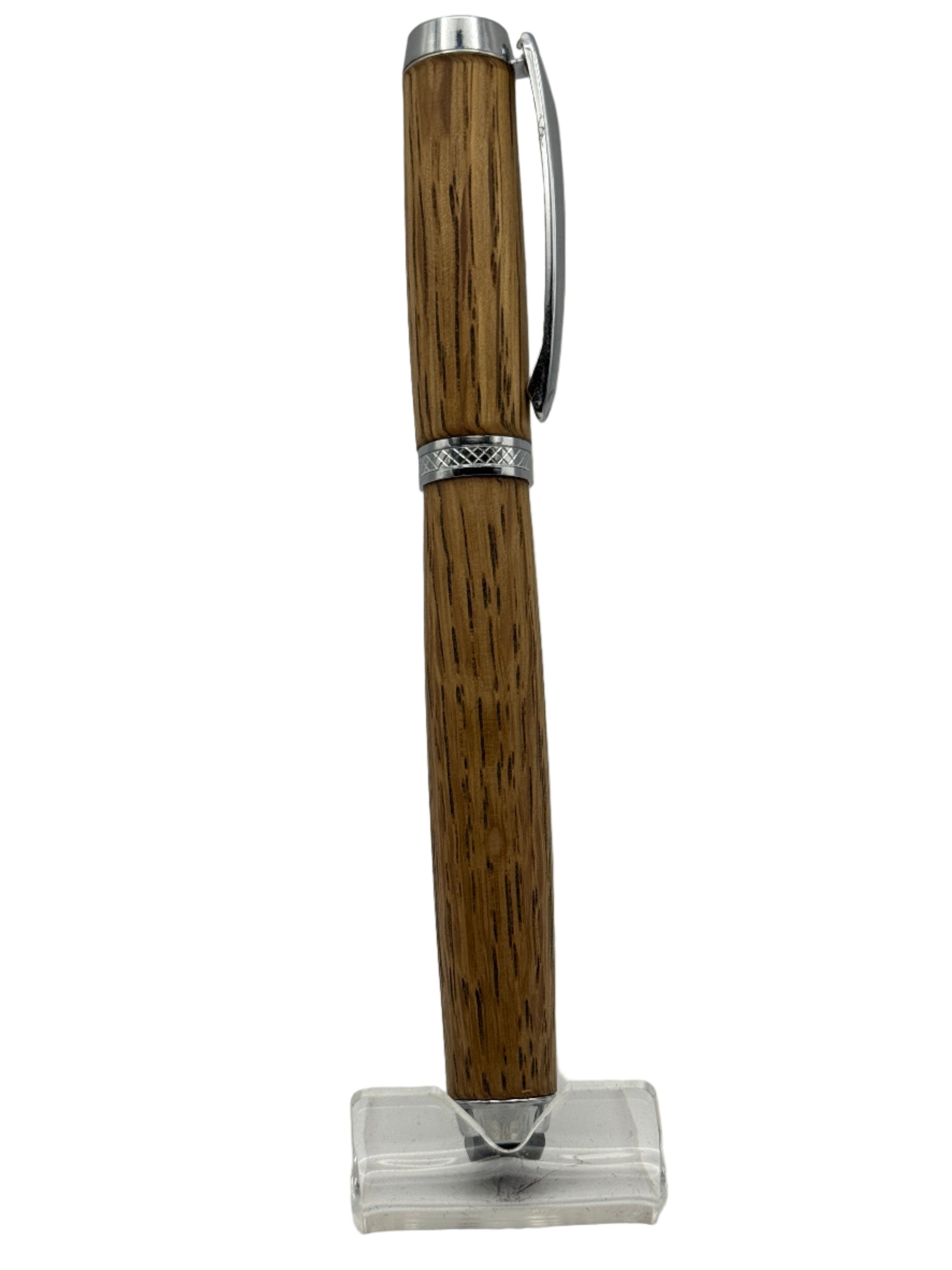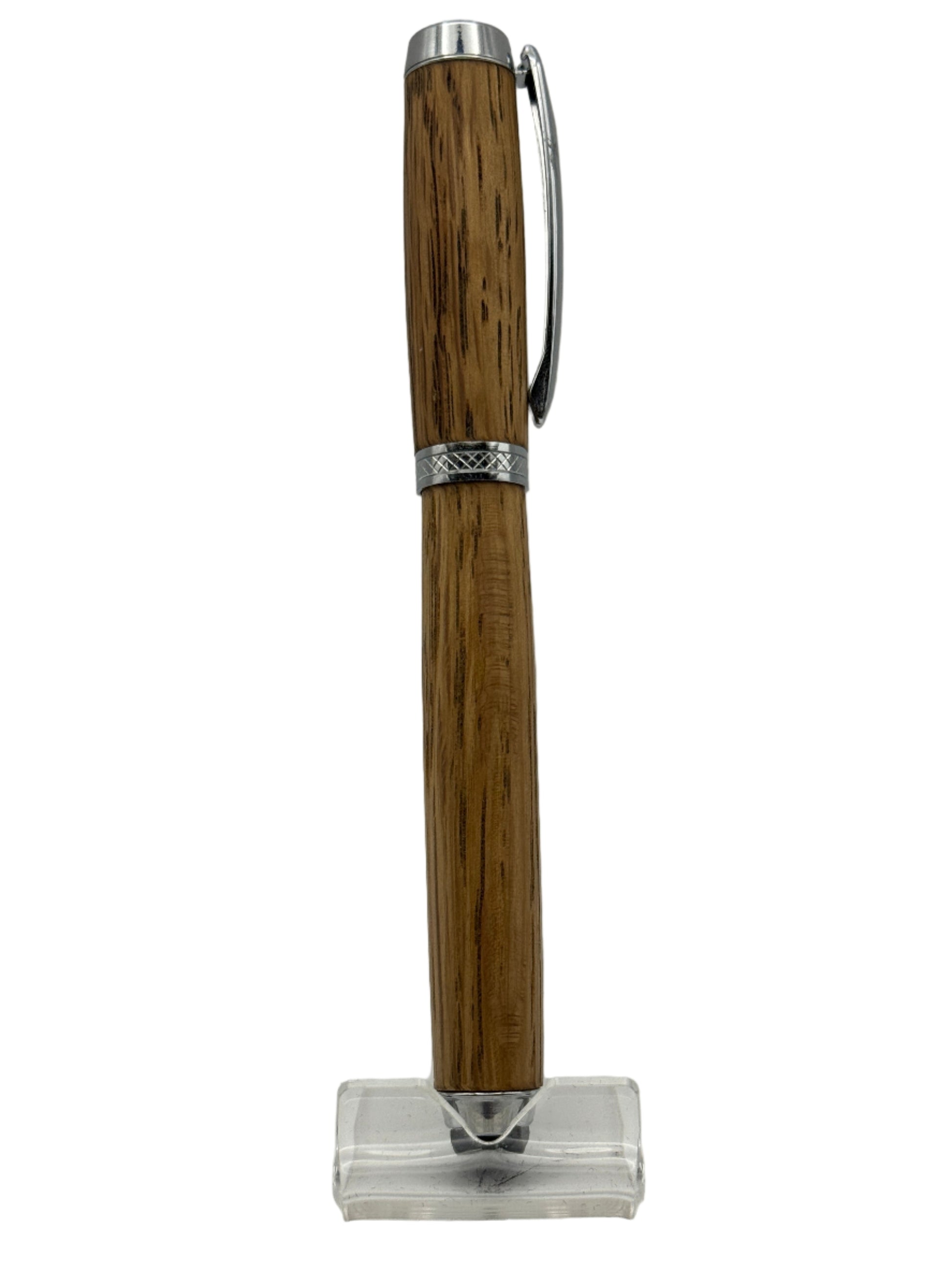 Illuminate your writing with The Stellar, a pen that radiates elegance and simplicity. Its sleek, streamlined shape and polished silver clip create a celestial aesthetic, making it a standout piece for those who appreciate understated brilliance. The minimalist design ensures a smooth, balanced writing experience, perfect for professionals, creatives, and anyone who wants their words to shine. Whether you’re drafting a proposal or sketching your dreams, The Stellar lets you write with the clarity and radiance of a star. Add a touch of brilliance to your collection with The Stellar today.The wood used in this pen is Jack Daniels Oak Barrel Stave