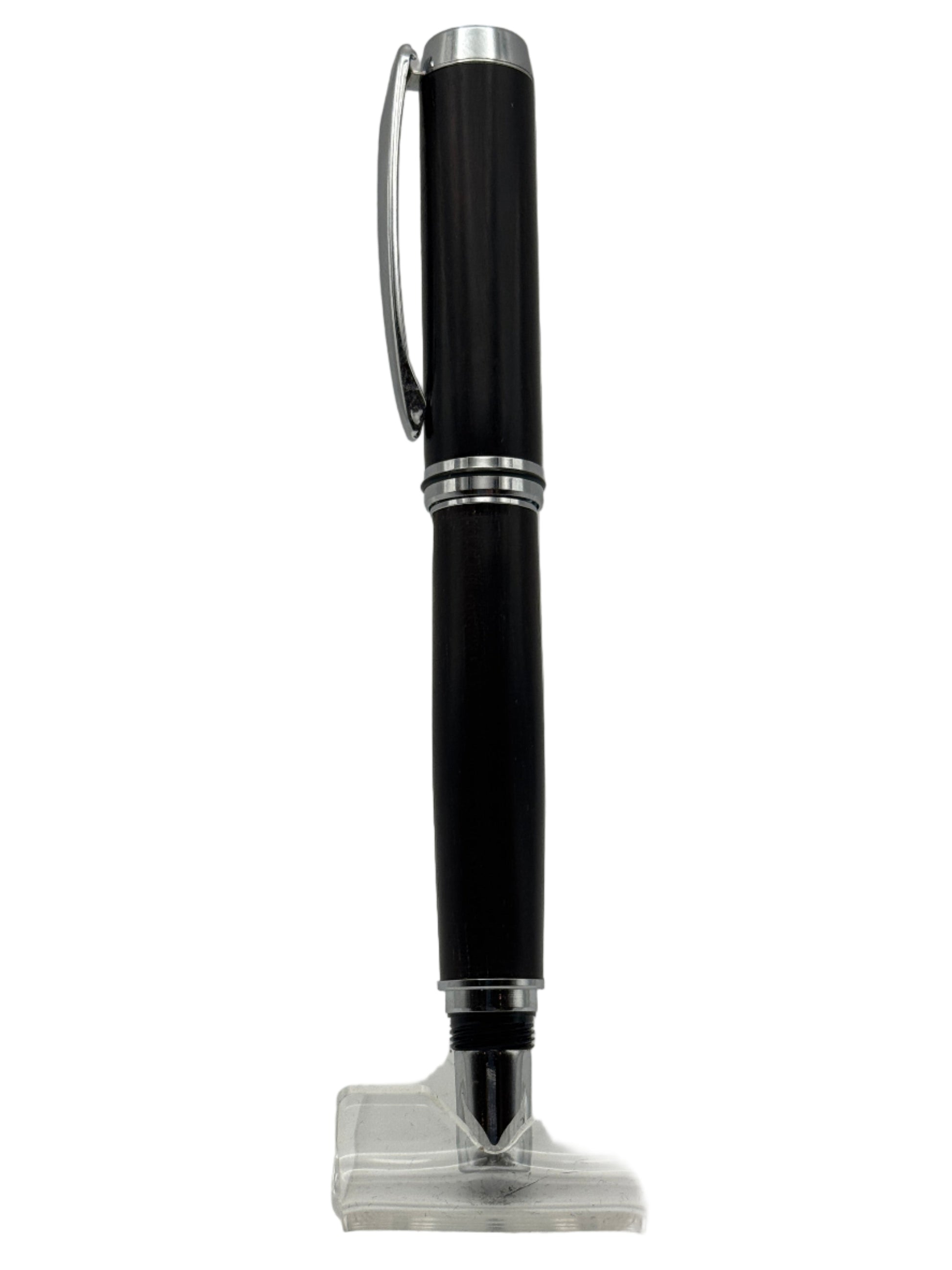 Ascend to greatness with The Viscount, a pen that embodies regal elegance in its purest form. Its sleek, streamlined shape is accented by a polished gold clip and subtle gold bands, offering a minimalist yet majestic aesthetic. Perfect for leaders, visionaries, and those who aspire to greatness, The Viscount provides a smooth, balanced writing experience that feels as commanding as its name suggests. Whether you’re signing a decree or crafting your legacy, this pen lets you write with the authority and grace of royalty. Choose The Viscount for your next masterpiece.The wood used in this pen is African Blackwood